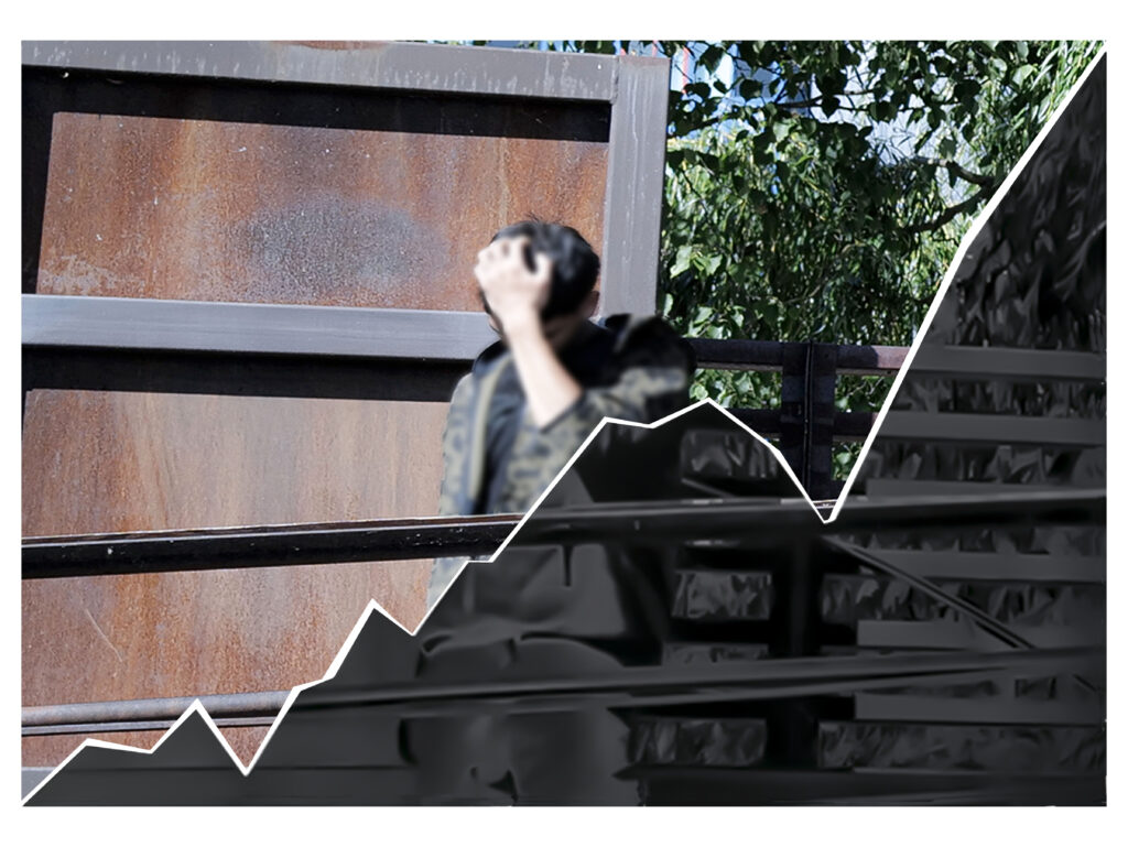 A series of four pictures contextualizing the threat of tipping points in our daily lives. Using the special properties of argentic paper when exposed to light, one part of the photograph remains stable while the other darkens over time. The dividing line between the two parts is based on yearly developments of socio-ecological disruptions since 2000. More on tipping points? see https://bit.ly/4sUZm7e